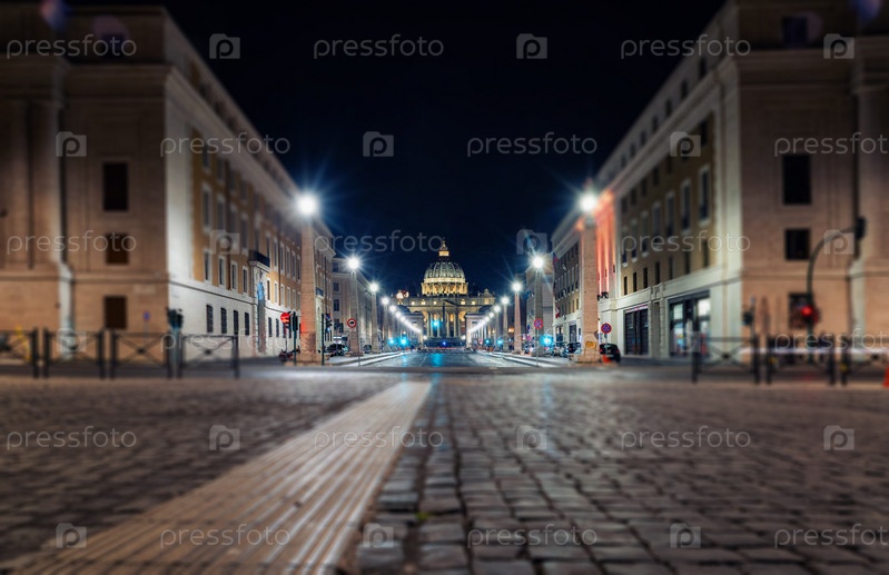 Собор Святого Петра в Риме вечером. Ночная съемка