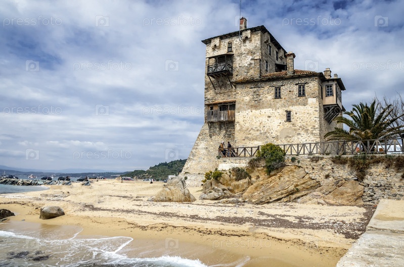 Исторический форт в порту и городе Урануполис, место входа в монастыри горы Афон, Халкидики, Греция