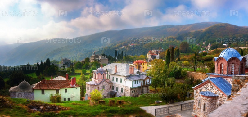 Пейзажи и детали зданий в Кариесе, столице Святой Горы Афон
