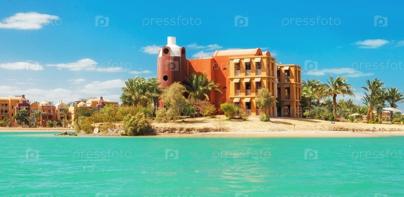 Каналы, здания и курортное оборудование на курорте Эль-Гуна. Египет, Северная Африка