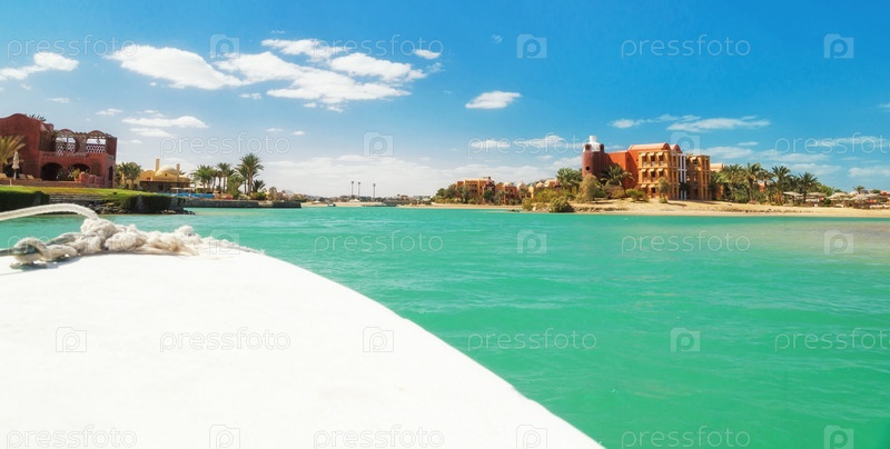 Каналы, здания и курортное оборудование на курорте Эль-Гуна. Египет, Северная Африка
