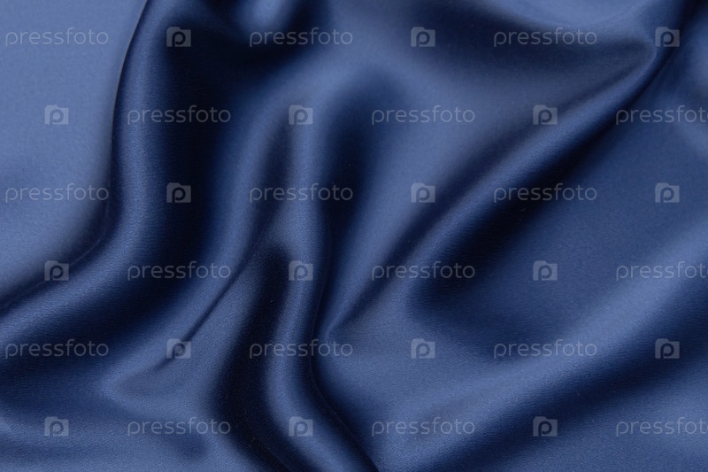 Синий фон текстуры ткани, волнистая ткань мягкого синего цвета, роскошная атласная или шелковая текстура ткани