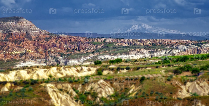 Горный пейзаж. Каппадокия, Анатолия, Турция. Вулканические горы в национальном парке Гереме. - Изображение