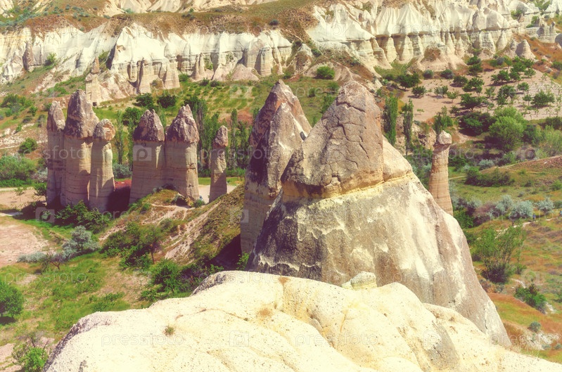 Горный пейзаж. Каппадокия, Анатолия, Турция. Вулканические горы в национальном парке Гереме. - Изображение