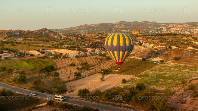 Воздушный шар пролетел над скалистым пейзажем в Каппадокии, Турция, 5 мая 2018 г