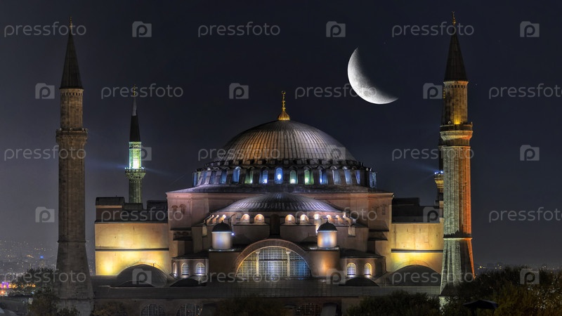 Вечерний вид на собор Святой Софии в Стамбуле, Турция