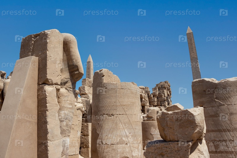 Египет, Луксор - 11 апреля 2021 года: Древние руины Карнакского храма в Луксоре (Фивы), Египет. Самый большой храмовый комплекс древности в мире. Всемирное наследие ЮНЕСКО
