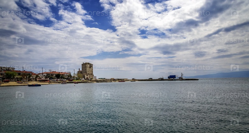 Исторический форт в порту и городе Урануполис, место входа в монастыри горы Афон, Халкидики, Греция