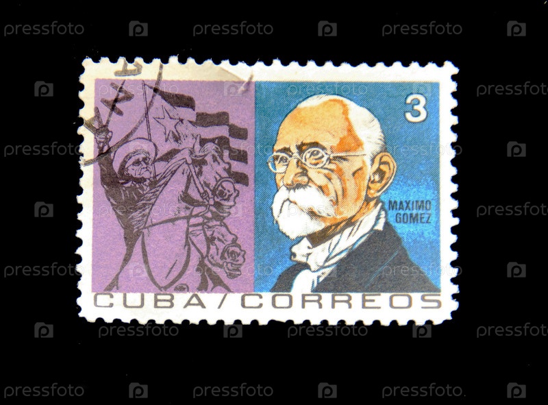 UBA - CIRCA 1968: почтовая марка, напечатанная на Кубе, изображает Максимо Гомеса, генерала и военачальника, 'Вторжение'; Борцы за независимость и сцены; Скотт 1357 A367 3c, 1968 г