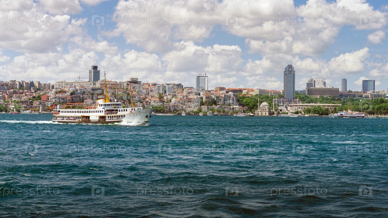 Панорамный вид на Стамбул с Галатской башни. Мосты, мечети и Босфор. Стамбул, Турция