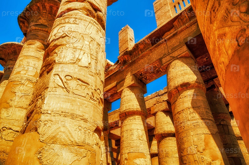Большой гипостильный зал и облака в храмах Карнака (древние Фивы). Луксор, Египет