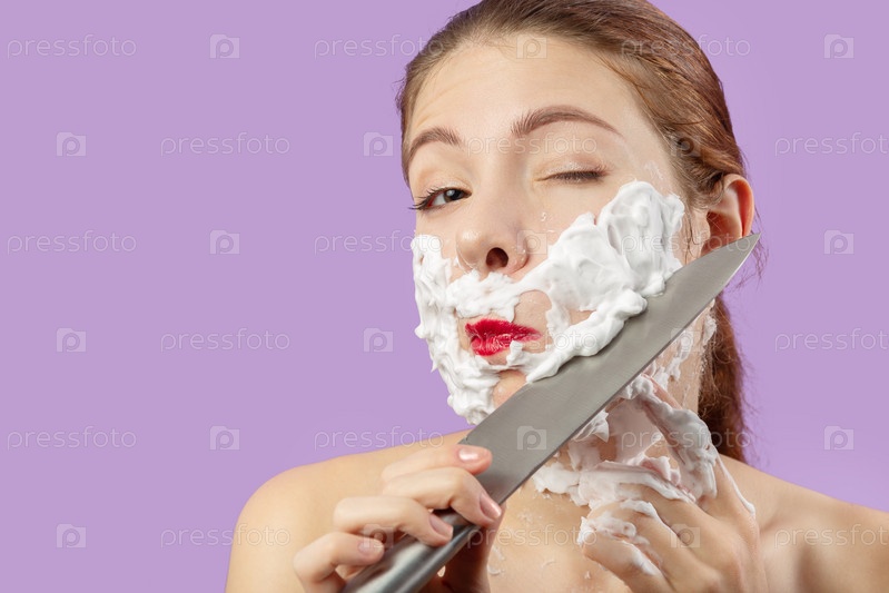 Женщина бреет лицо