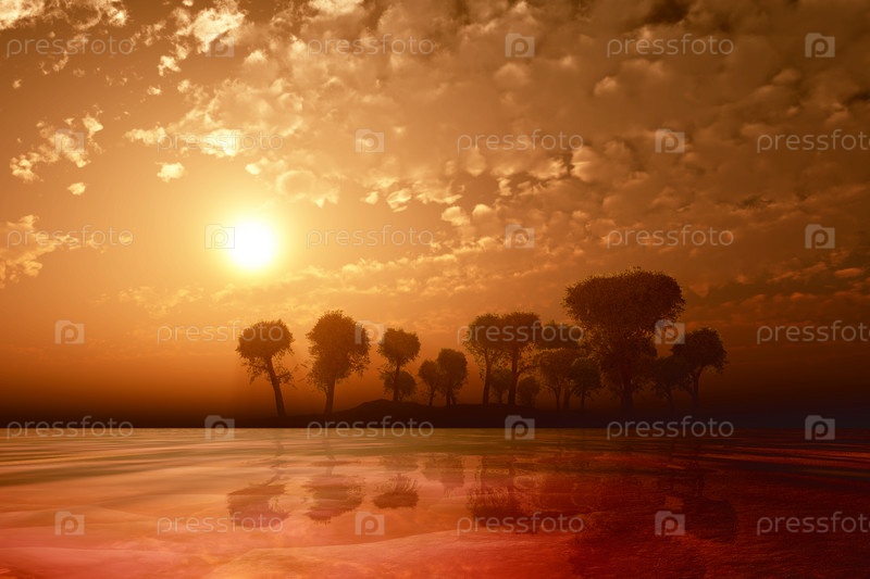 Желтый закат над островом