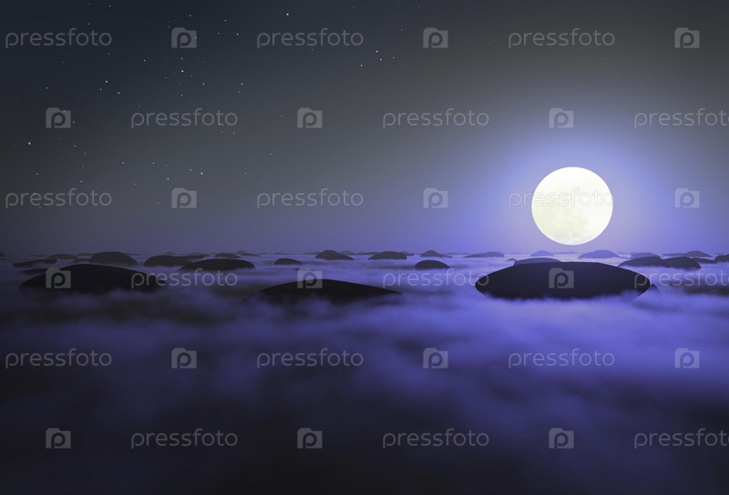 Скалы в облаках луна