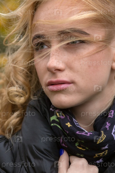 Грустная задумчивая женщина с портретом длинных вьющихся волос