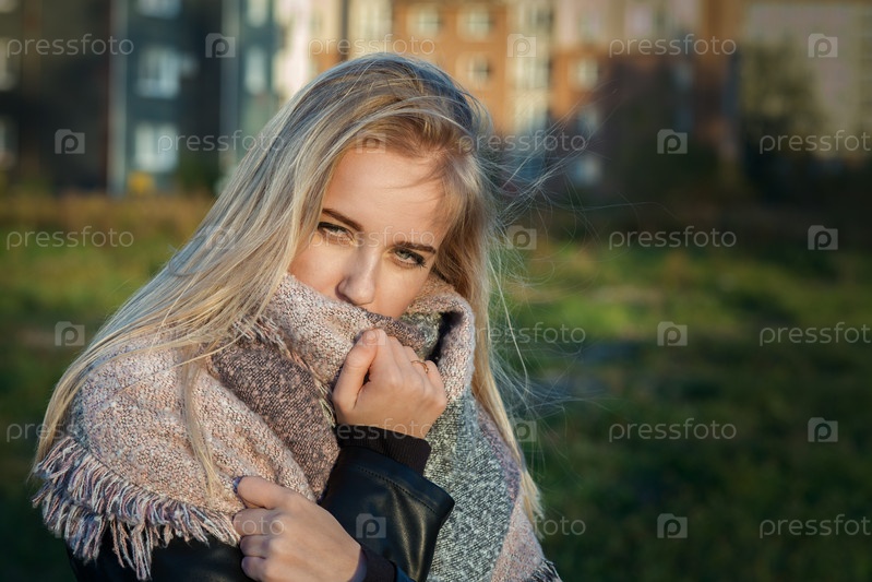Грустная задумчивая блондинка в тонированном шарфе
