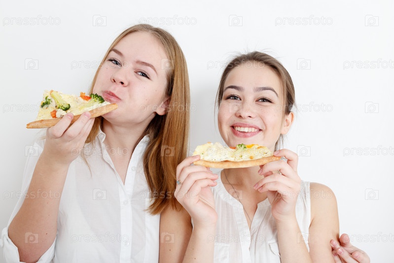 Девочки едят пиццу