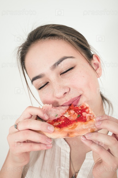 Женщина ест пиццу