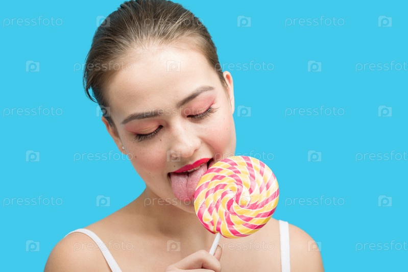Девушка лижет конфеты