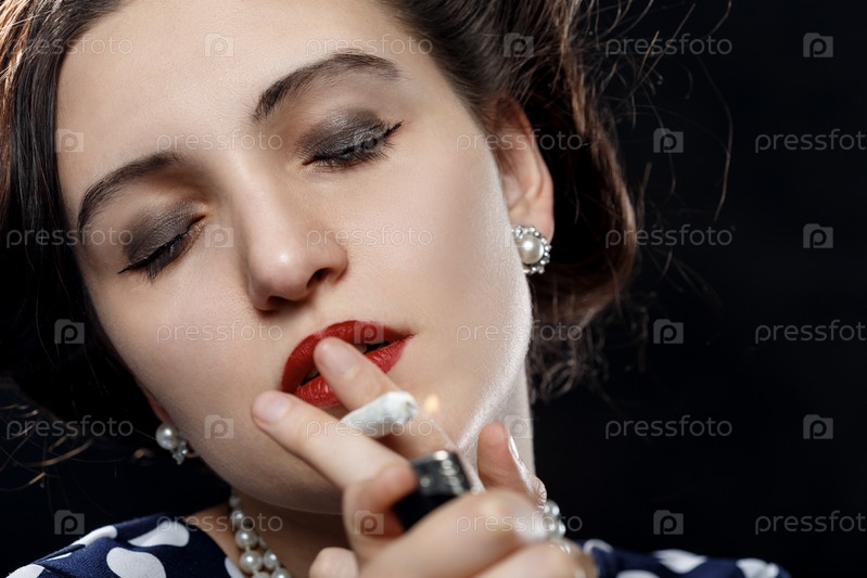 Женщина курит