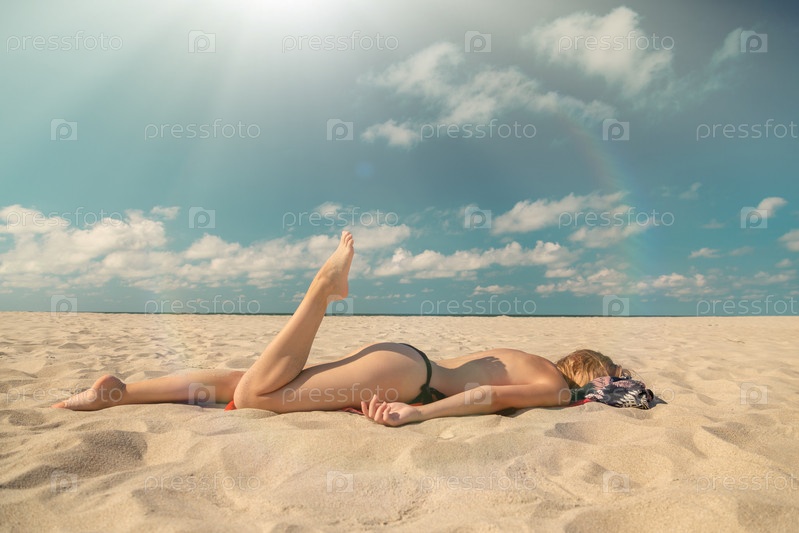 Девушка загорает на море
