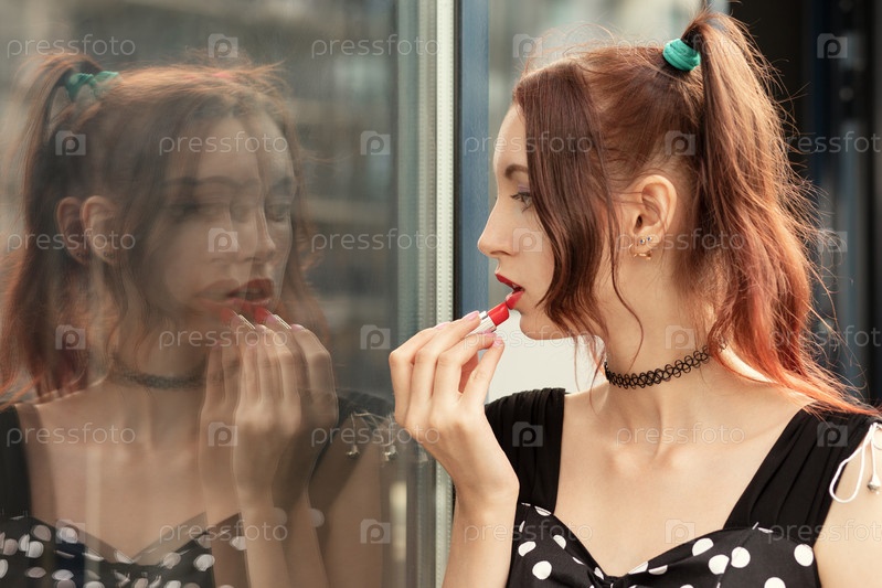 Девушка красится сама