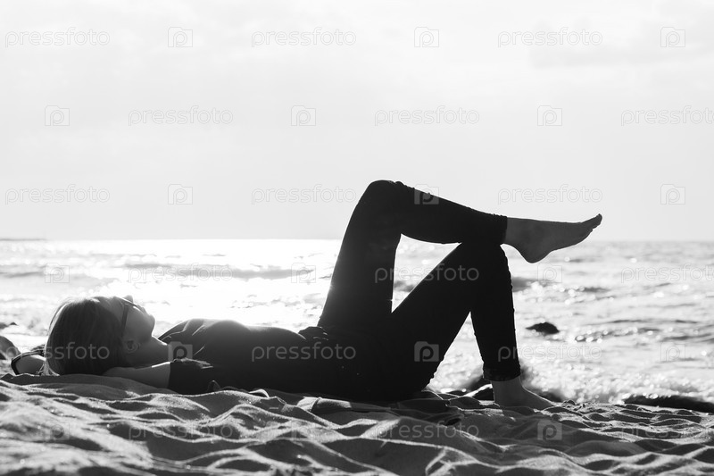 Женщина лежит на пляже
