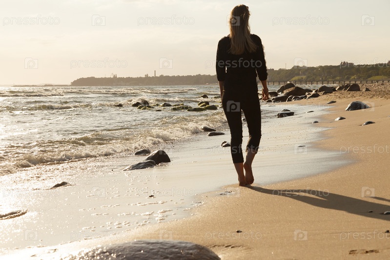 Грустная женщина в море