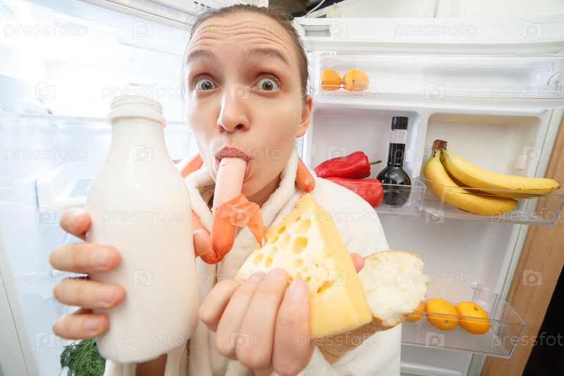 Женщина возле холодильника