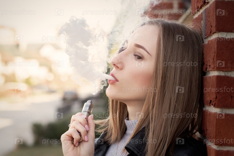 Женщина курит электронную сигарету