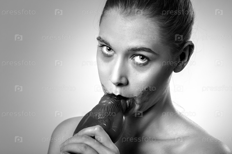 Женщина ест шоколад