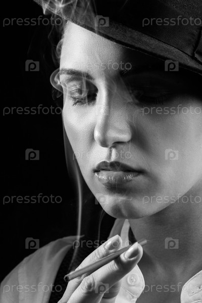 Женщина курит сигарету
