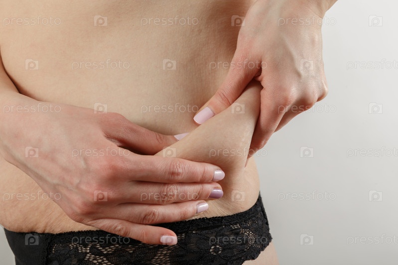 Женщина бьет себя по жиру