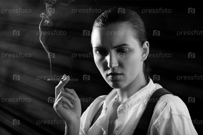 Женщина курит сигарету
