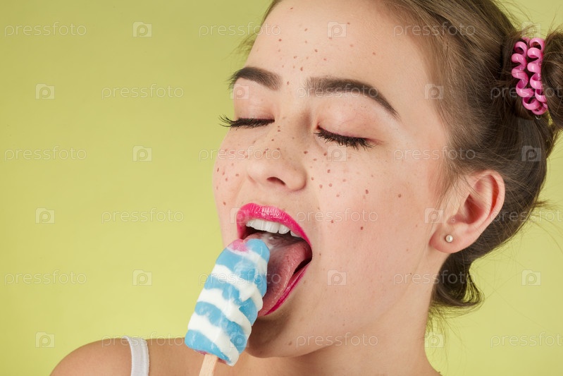 Девушка ест мороженое