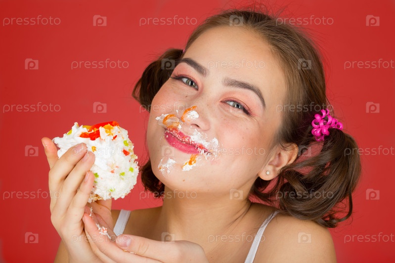 Девушка ест сладкий десерт