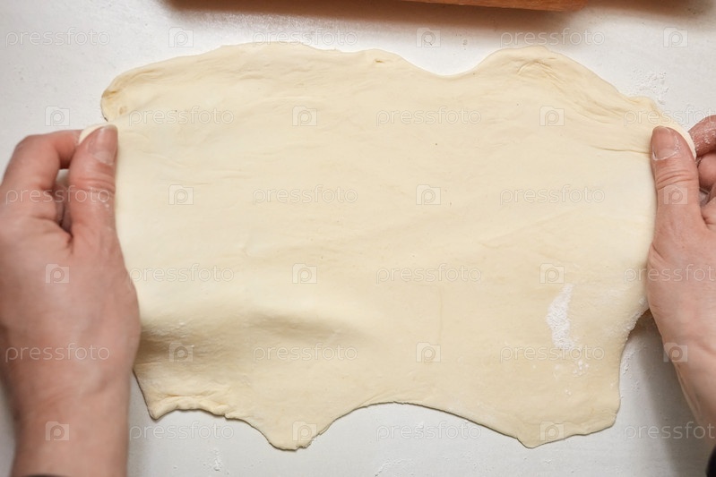 Руки с сырым тестом