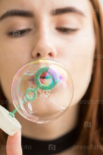 Девушка делает мыльный пузырь