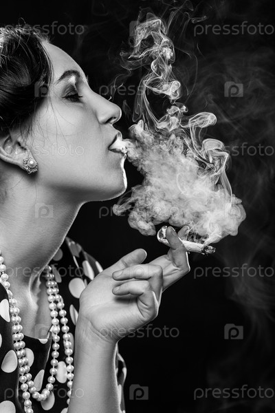 Женщина курит косяк