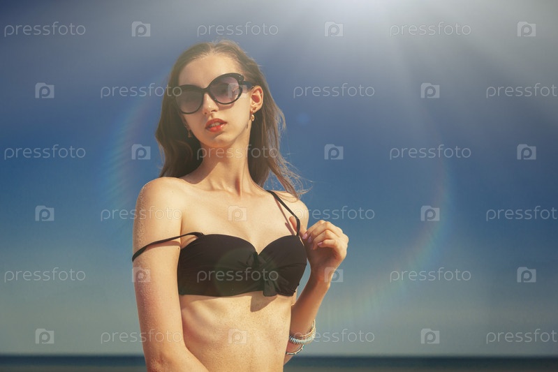 Красивая девушка загорает