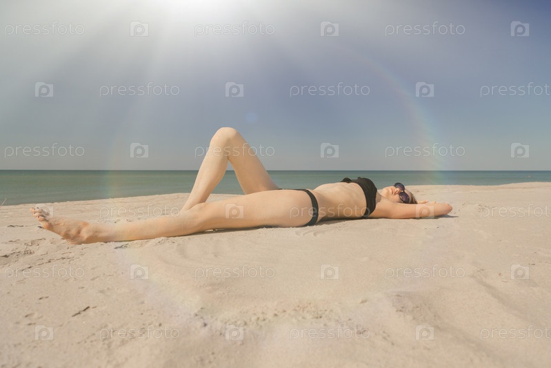Красивая девушка загорает