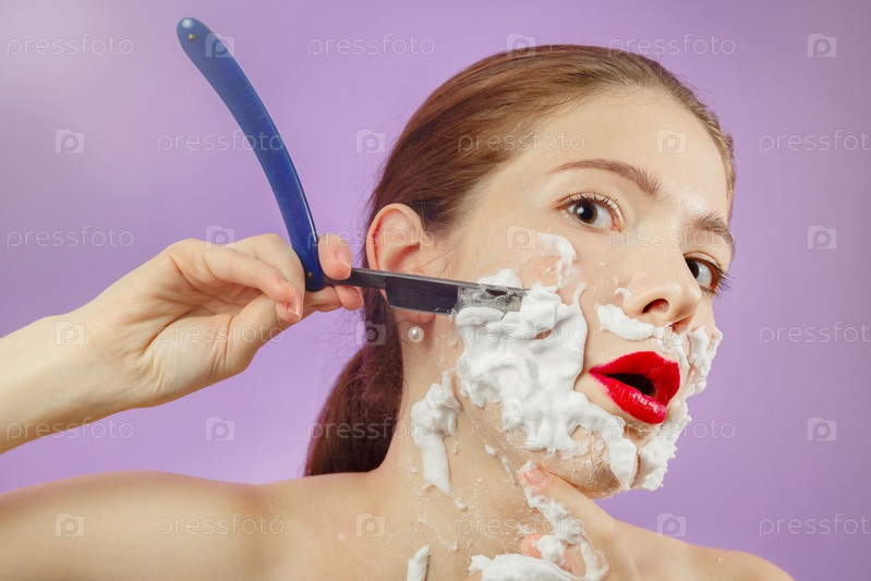Женщина бреется