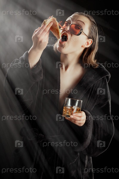 Женщина пицца алкоголь