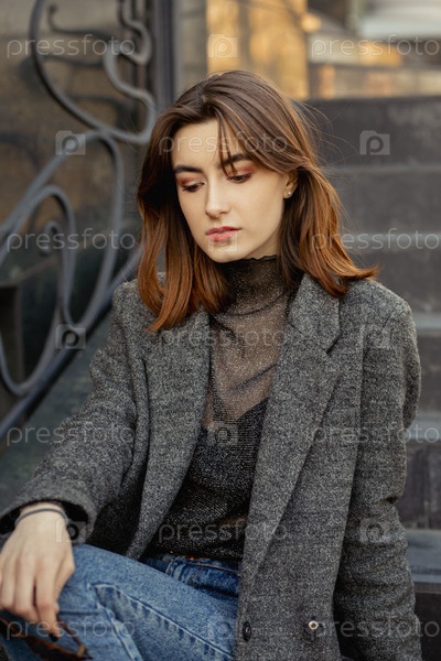 Грустная девушка сидит
