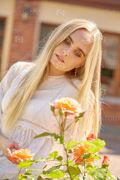 Девушка возле роз