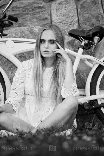 Молодая женщина велосипедист
