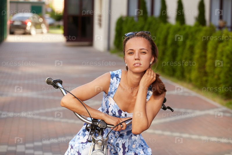 Девушка велосипедистка отдыхает