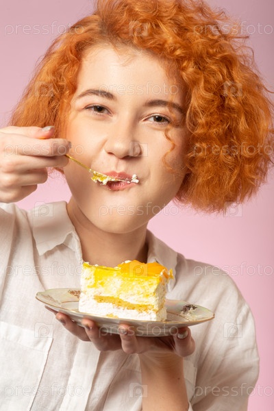 Девушка ест десерт