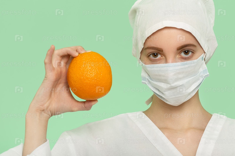 Медсестра показывает апельсин