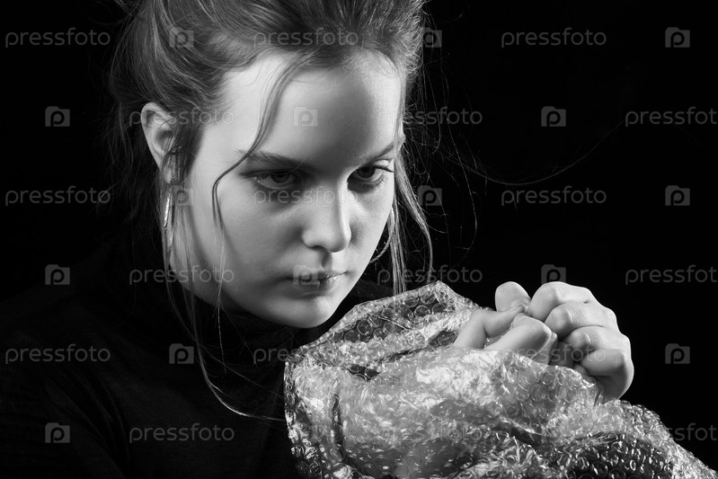 Женщина лопает мыльные пузыри